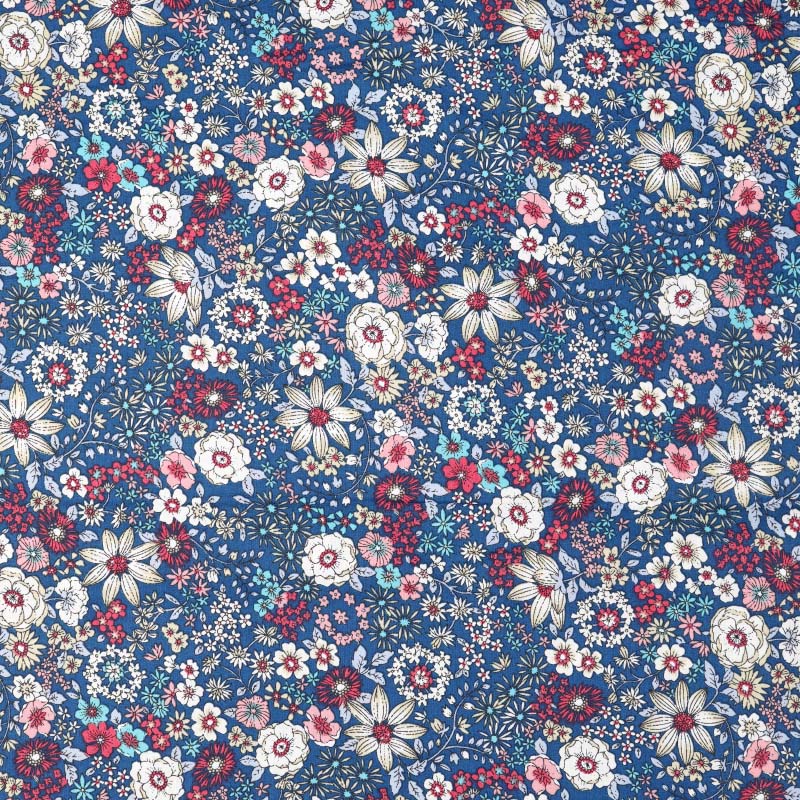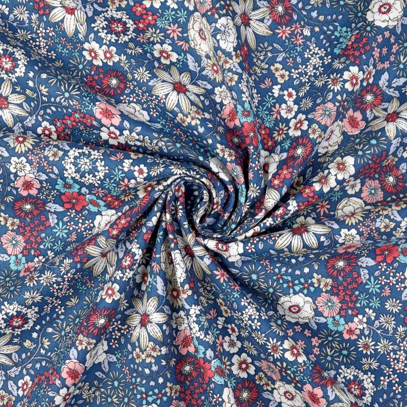En tunn och följsam Bomullspoplin i 100% bomull! Tyget har ett tryckt blommönster på rätsidan. Bomullstyget är tätvävt och helt i naturmaterial vilket gör att tyget andas och känns skönt och luftigt. Passar utmärkt till sömnad av lapptäcken, blusar, skjortor, klänningar, sängkläder och mycket mer!
