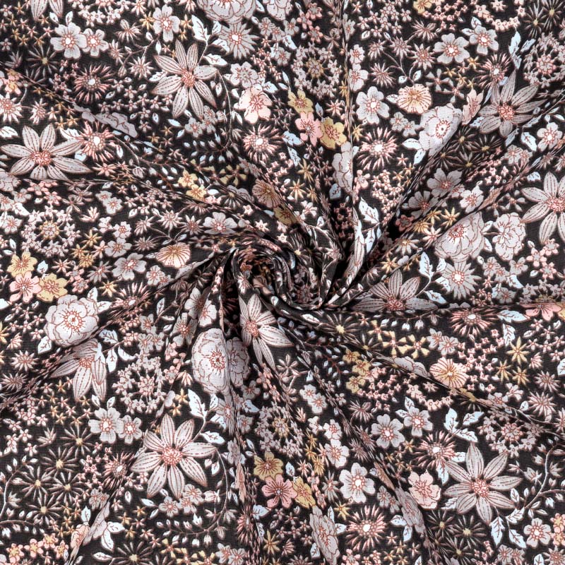 En tunn och följsam Bomullspoplin i 100% bomull! Tyget har ett tryckt blommönster på rätsidan. Bomullstyget är tätvävt och helt i naturmaterial vilket gör att tyget andas och känns skönt och luftigt. Passar utmärkt till sömnad av lapptäcken, blusar, skjortor, klänningar, sängkläder och mycket mer!