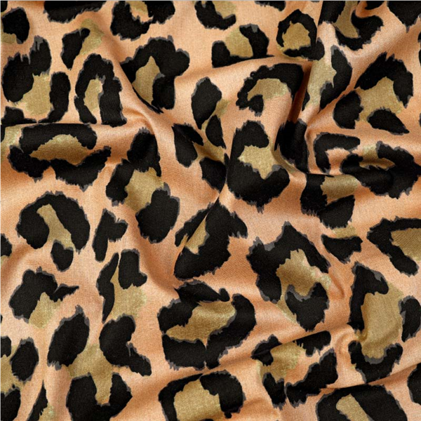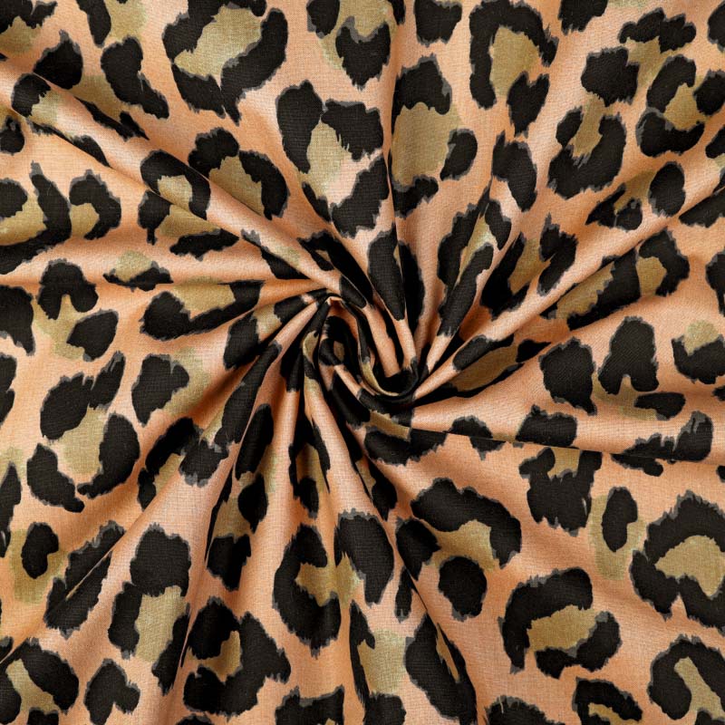 En tunn och följsam Bomullspoplin i 100% bomull! Tyget har ett tryckt leopardmönster på rätsidan. Bomullstyget är tätvävt och helt i naturmaterial vilket gör att tyget andas och känns skönt och luftigt. Passar utmärkt till sömnad av lapptäcken, blusar, skjortor, klänningar, sängkläder och mycket mer!