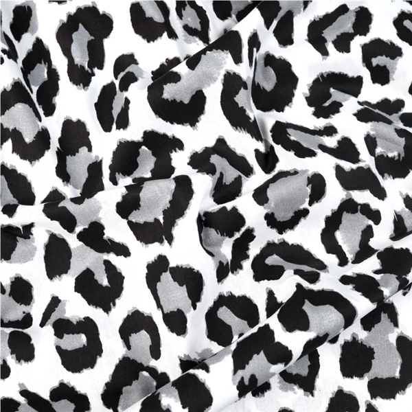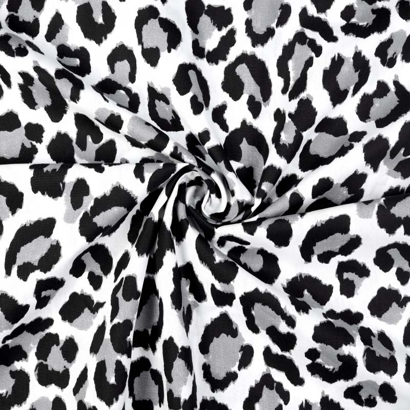 En tunn och följsam Bomullspoplin i 100% bomull! Tyget har ett tryckt leopardmönster på rätsidan. Bomullstyget är tätvävt och helt i naturmaterial vilket gör att tyget andas och känns skönt och luftigt. Passar utmärkt till sömnad av lapptäcken, blusar, skjortor, klänningar, sängkläder och mycket mer!