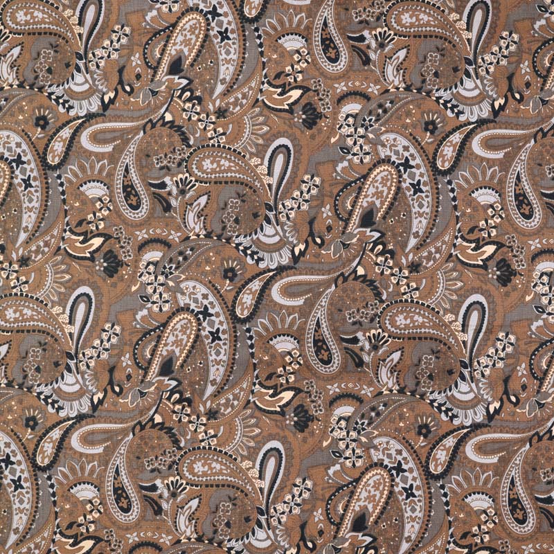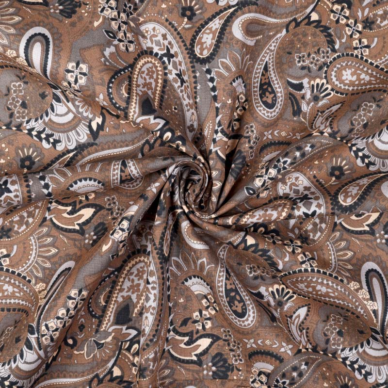 En tunn och följsam Bomullspoplin i 100% bomull! Tyget har ett tryckt paisleymönster på rätsidan. Bomullstyget är tätvävt och helt i naturmaterial vilket gör att tyget andas och känns skönt och luftigt. Passar utmärkt till sömnad av lapptäcken, blusar, skjortor, klänningar, sängkläder och mycket mer!