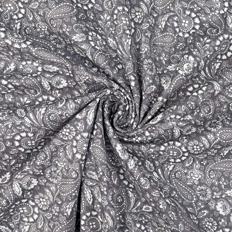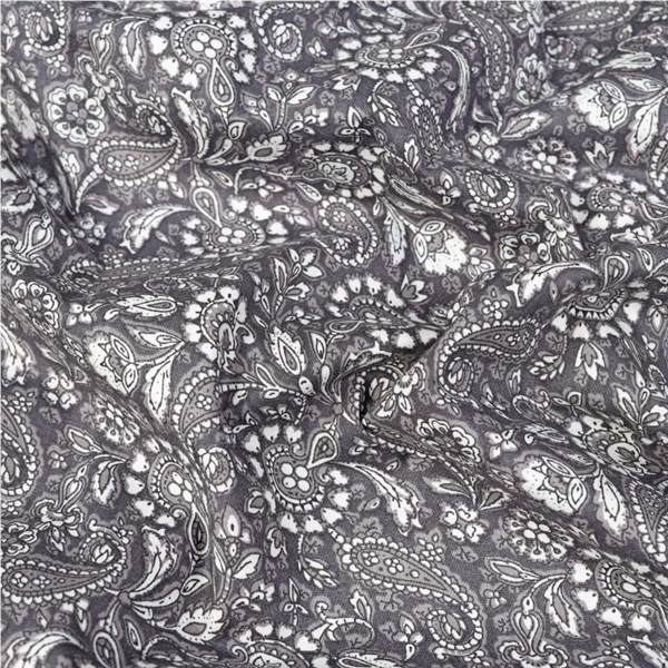 En tunn och följsam Bomullspoplin i 100% bomull! Tyget har ett tryckt paisleymönster på rätsidan. Bomullstyget är tätvävt och helt i naturmaterial vilket gör att tyget andas och känns skönt och luftigt. Passar utmärkt till sömnad av lapptäcken, blusar, skjortor, klänningar, sängkläder och mycket mer!
