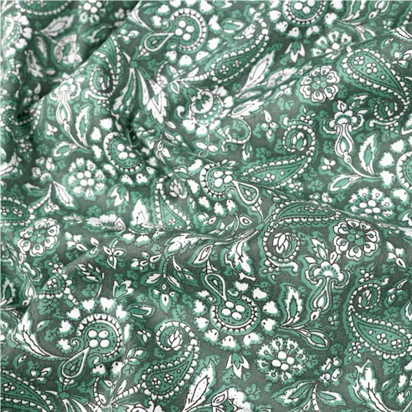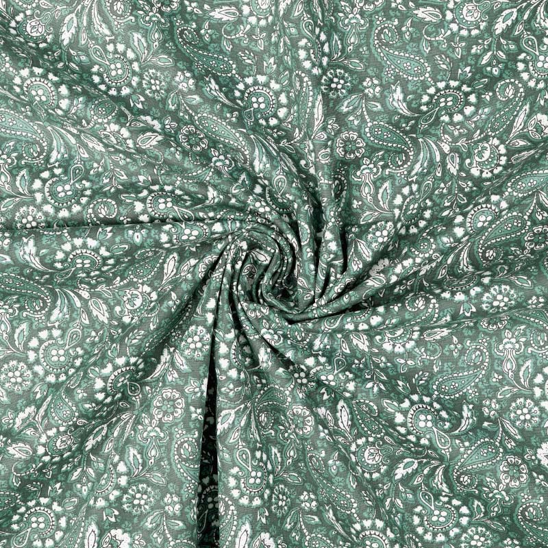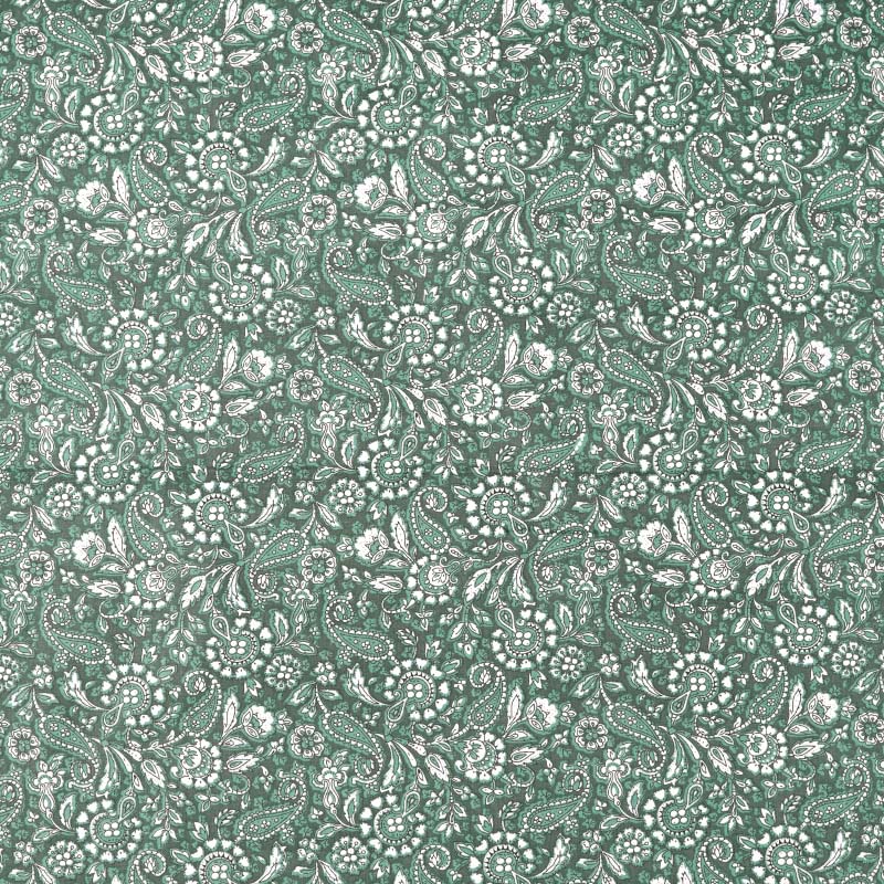 En tunn och följsam Bomullspoplin i 100% bomull! Tyget har ett tryckt paisleymönster på rätsidan. Bomullstyget är tätvävt och helt i naturmaterial vilket gör att tyget andas och känns skönt och luftigt. Passar utmärkt till sömnad av lapptäcken, blusar, skjortor, klänningar, sängkläder och mycket mer!
