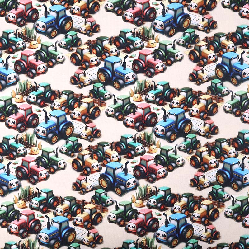 Bomullstrikå Söta Traktorer