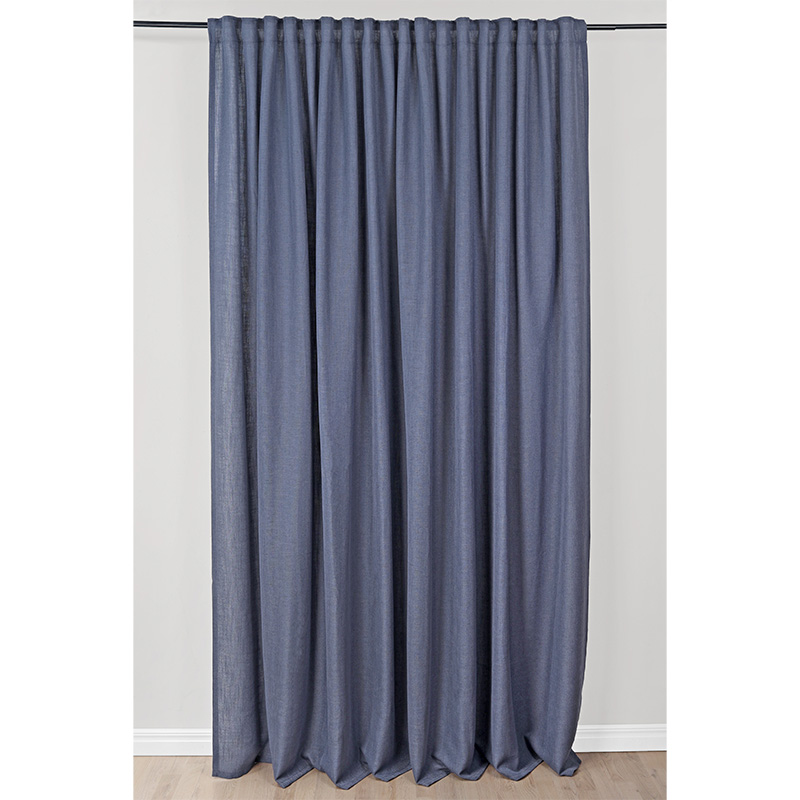 Det tätt vävda tyget i lyxig linnelook ger ett exklusivt och naturligt uttryck, och släpper in ljuset på ett mjukt och dämpat vis. Den tunga kvaliteten gör att gardinen faller mjukt och elegant, vilket ger rummet en varm och ombonad atmosfär.
