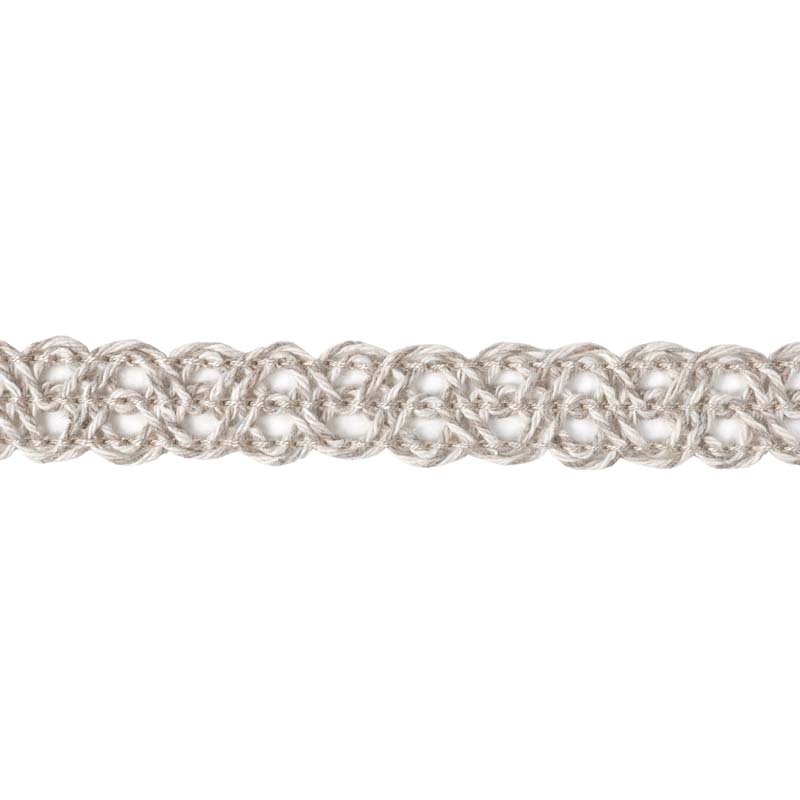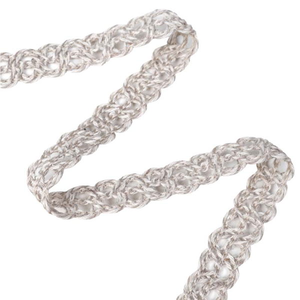 Dekorativt band i ett flätliknande mönster av tunt garn. Bandet har en bredd på ca 1,5cm och och passar både till pyssel, som detalj på klädsömnaden, inredningsdetaljerna och mycket mer!
