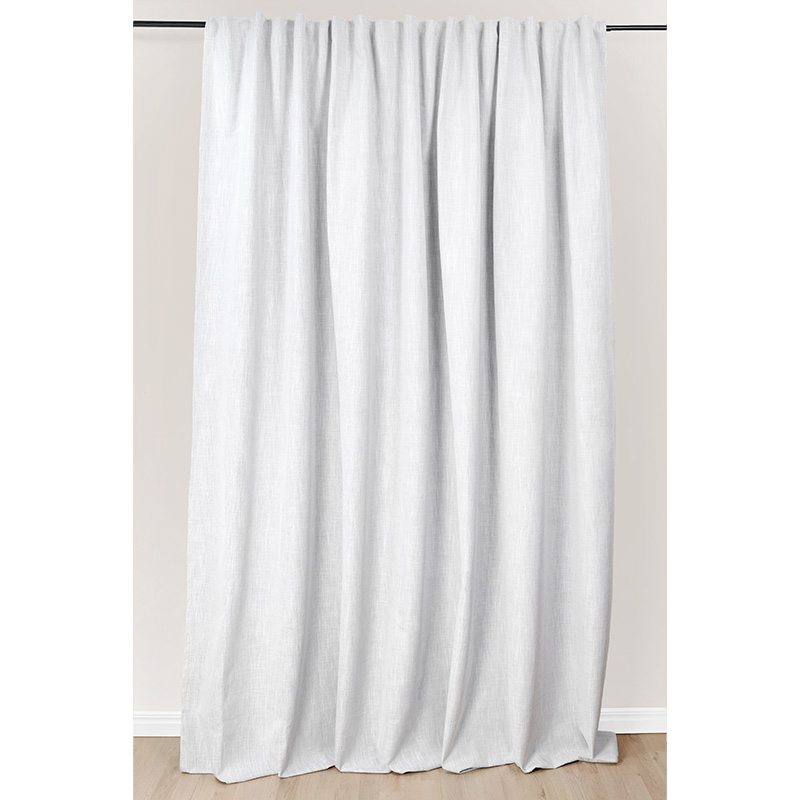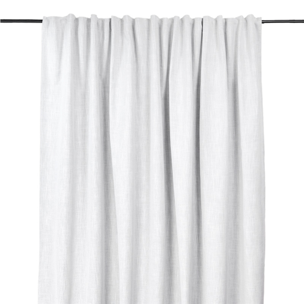 Multibandslängd i mörkläggande mjukt tyg med lite lyster, även kallad sun-out. Tyget är vävt med en speciellt mörkläggande väv i tre skikt, med spärrskikt i mitten. Gardinen har multiband vilket innebär att du kan hänga den på rundstång med kanalen, använda veckbandet med fingerkrokar, använda endast hällorna för att få en rynkad gardin samt använda rynkbandskrokar. Gardinen har overlock nertill och går enkelt att fålla med hjälp av fållband.
