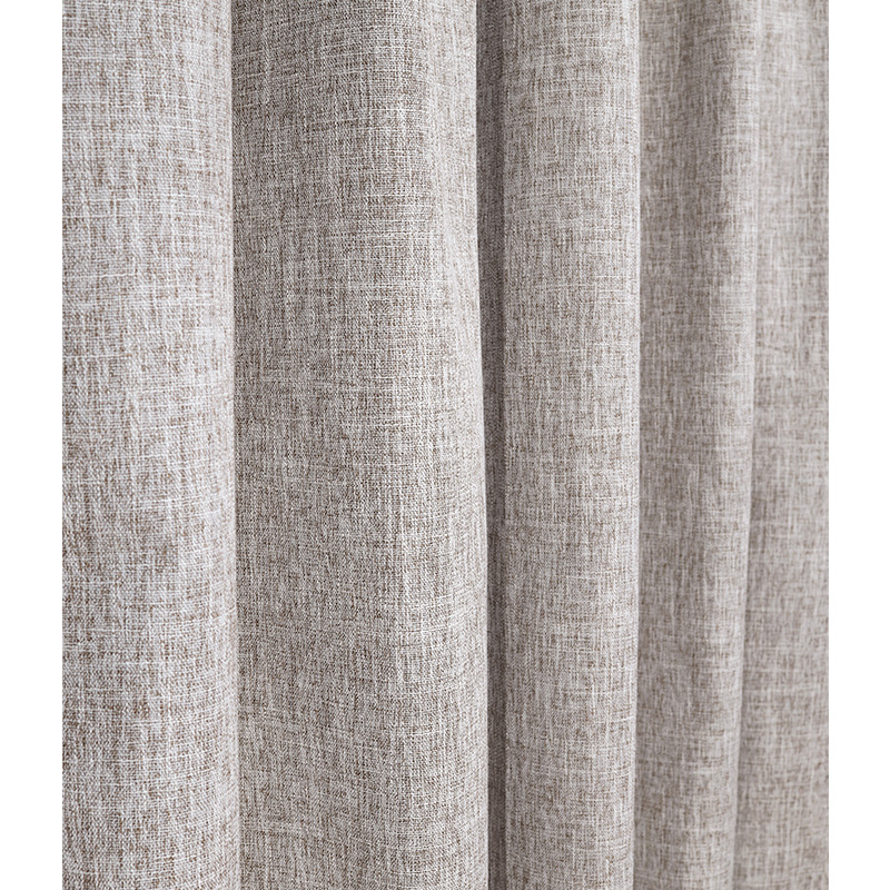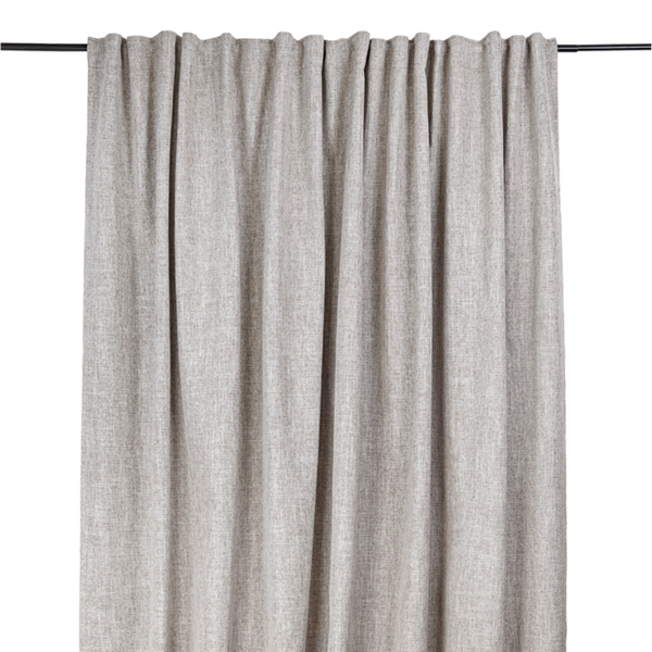 Multibandslängd i mörkläggande mjukt tyg med lite lyster, även kallad sun-out. Tyget är vävt med en speciellt mörkläggande väv i tre skikt, med spärrskikt i mitten. Gardinen har multiband vilket innebär att du kan hänga den på rundstång med kanalen, använda veckbandet med fingerkrokar, använda endast hällorna för att få en rynkad gardin samt använda rynkbandskrokar. Gardinen har overlock nertill och går enkelt att fålla med hjälp av fållband.