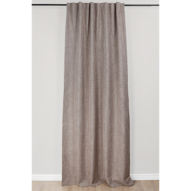 Multibandslängd i mörkläggande mjukt tyg med lite lyster, även kallad sun-out. Tyget är vävt med en speciellt mörkläggande väv i tre skikt, med spärrskikt i mitten. Gardinen har multiband vilket innebär att du kan hänga den på rundstång med kanalen, använda veckbandet med fingerkrokar, använda endast hällorna för att få en rynkad gardin samt använda rynkbandskrokar. Gardinen har overlock nertill och går enkelt att fålla med hjälp av fållband.
