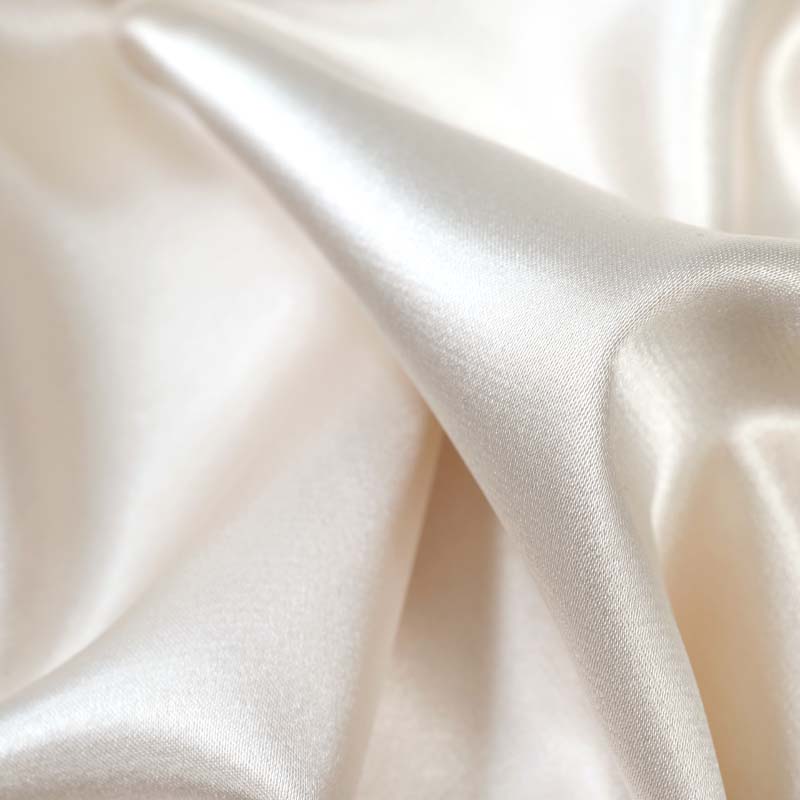 En blank och mjuk Duchesse med stretch i tyget. Med detta tyg får du ett elegant fall på plagget såväl som en skön lätt känsla mot kroppen. Till fester och brudklänningar bland annat. Använd med fördel en stretchnål när du syr i detta tyg. Tyget är stretchigt på bredden av tyget, mot ett håll.