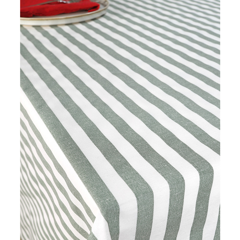 Randig Dukväv med fin struktur i återvunnet material (65% återvunnen Polyester och 35% återvunnen Bomull). Dukväv Edith är belagt med akryl, vilket gör det lätt att torka av och behöver inte fållas.