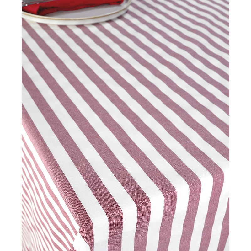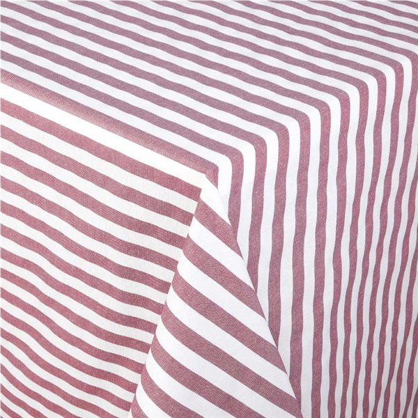 Randig Dukväv med fin struktur i återvunnet material (65% återvunnen Polyester och 35% återvunnen Bomull). Dukväv Edith är belagt med akryl, vilket gör det lätt att torka av och behöver inte fållas.