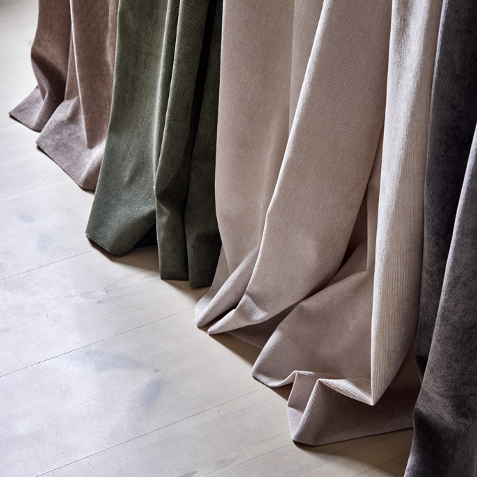 Eddie är ett par stilrena gardinlängder med en smalrandig manchesterlook för lyxigare känsla. Tyget faller tungt och är otroligt mjukt. Kombinera exempelvis dessa gardiner med en skir gardin för att skapa en hotellkänsla! Gardinerna är overlockade nertill. Kombineras fint med Kuddfodral Eddie!