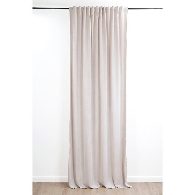 Gardinen är sydd med multiband upptill och kan såväl hängas på tak- eller väggskena med fingerkrokar eller på stång genom hällorna. Gardinerna skickas i en förpackning med 2 st gardinlängder (140x250cm)!