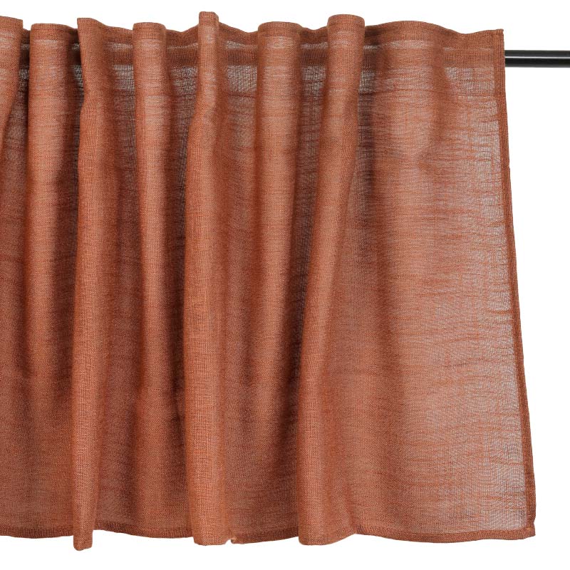 En tunnare gardinkappa med en struktur som påminner om linnetyg och som ger en stilfull känsla i ditt hem med en balans mellan ljusgenomsläpp och integritet. Kappan är i 79% Polyester och 21% Viscose, och har ett mycket fint, naturligt fall. Kappan har multiband upptill och kan såväl hängas på tak- eller väggskena med fingerkrokar eller på stång genom hällorna.