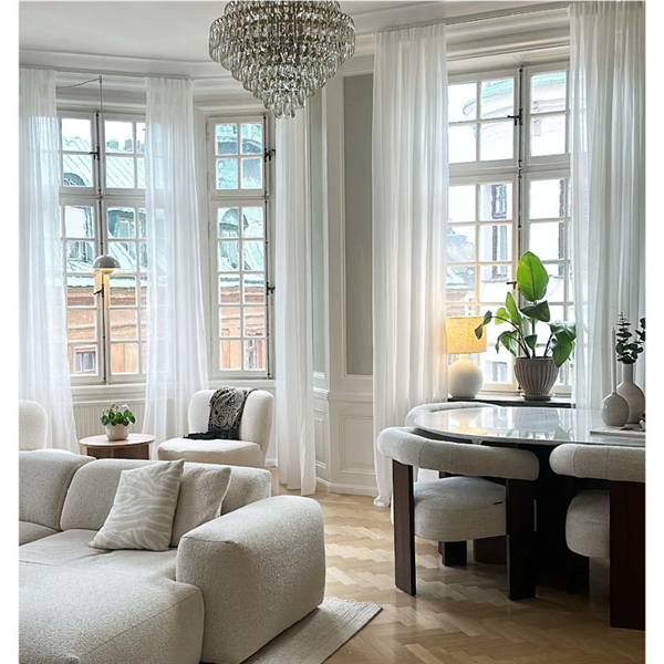 Uppgradera ditt hem med skira Gardintyg Hilton som släpper in ett vackert och naturligt ljus. Den fint vävda strukturen ger en exklusiv linnelook och skapar en tidlös stil som passar i alla rum – från vardagsrum och matsal till sovrum och kontor.