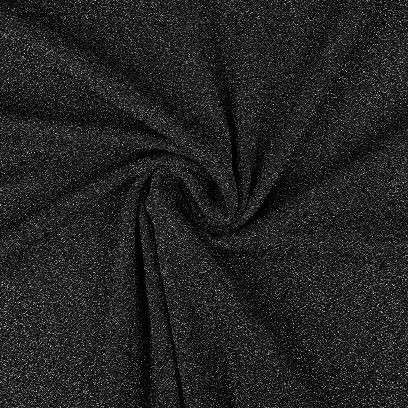 Ett stretchigt och otroligt lyxigt Modetyg med invävda glittertrådar som skapar ett vackert skimmer och djup. Trikåtyget har en mjuk och följsam känsla, med ett lätt, naturligt fall. Avigsidan är slät och känns behaglig mot huden. Tyget passar perfekt till sömnad av klänningar, blusar, byxor, kavajer, kjolar och andra festliga plagg!