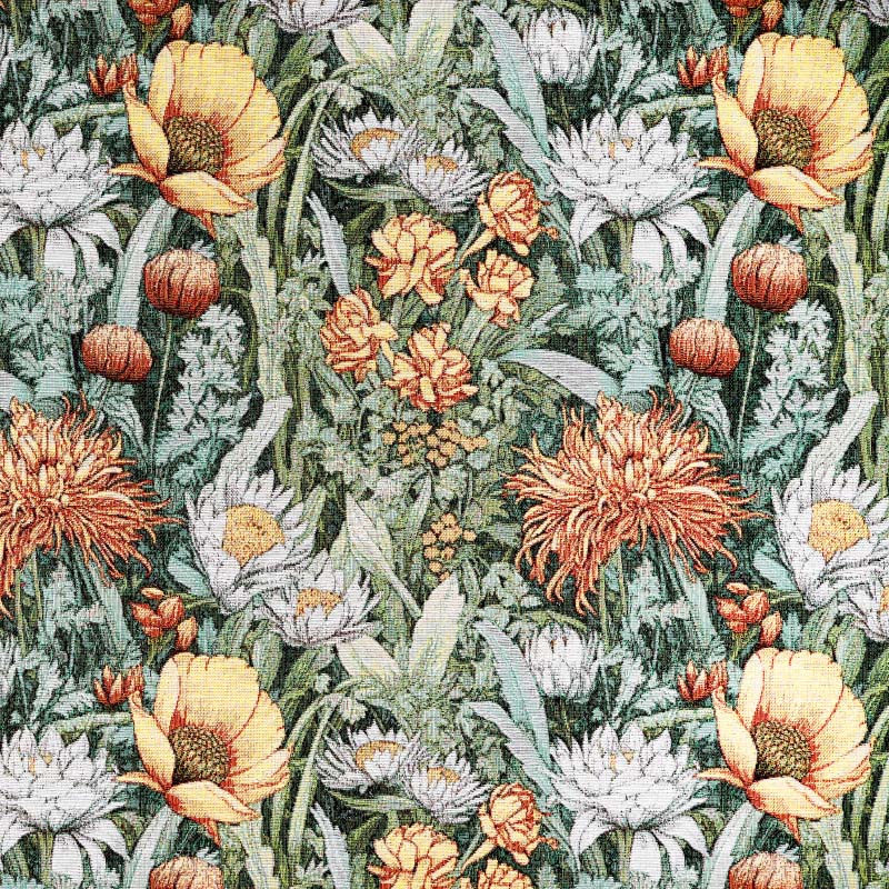 Gobelängtyg som är ett kraftigt vävt Inredningstyg i hög kvalitet och bredd 140cm. Direktimporterat från södra Spanien. En dekorativ och slitstark Gobeläng med vävd struktur och vacker mönsterbild.
