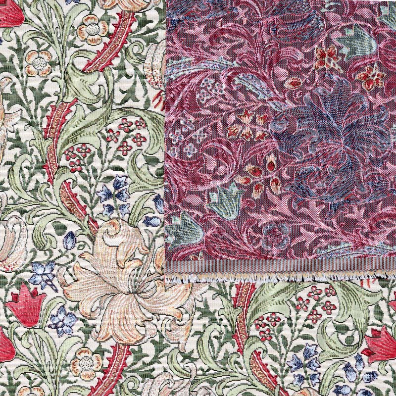 Gobelängtyg som är ett kraftigt vävt Inredningstyg i hög kvalitet och bredd 140cm. Direktimporterat från södra Spanien. En dekorativ och slitstark Gobeläng med vävd struktur och vacker mönsterbild.