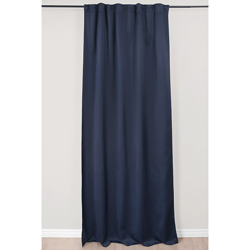 Multibandslängd i mörkläggande mjukt tyg med lite lyster, även kallad sun-out. Mörkläggningsgardinen är vävd med en speciellt mörkläggande väv i tre skikt, med spärrskikt i mitten. Det hindrar ljus från att tränga in i sovrummet och stänger även ute månsken och gatubelysning om natten. Gardinen har multiband vilket innebär att du kan hänga den på rundstång med kanalen, använda veckbandet med fingerkrokar, använda endast hällorna för att få en rynkad gardin samt använda rynkbandskrokar. Gardinen har overlock nertill och går enkelt att fålla med hjälp av fållband.
