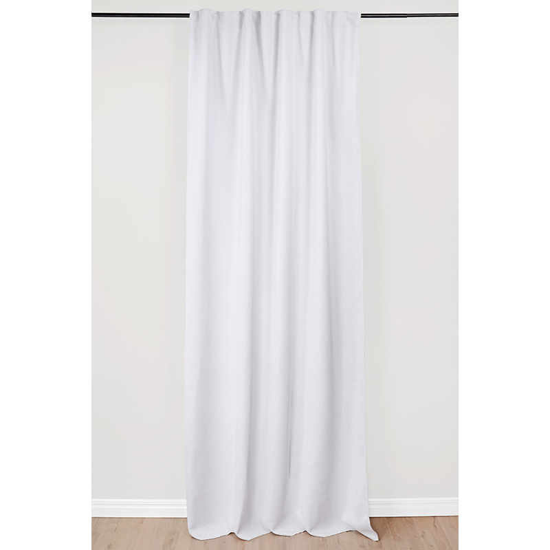 Multibandslängd i mörkläggande mjukt tyg med lite lyster, även kallad sun-out. Mörkläggningsgardinen är vävd med en speciellt mörkläggande väv i tre skikt, med spärrskikt i mitten. Det hindrar ljus från att tränga in i sovrummet och stänger även ute månsken och gatubelysning om natten. Gardinen har multiband vilket innebär att du kan hänga den på rundstång med kanalen, använda veckbandet med fingerkrokar, använda endast hällorna för att få en rynkad gardin samt använda rynkbandskrokar. Gardinen har overlock nertill och går enkelt att fålla med hjälp av fållband.
