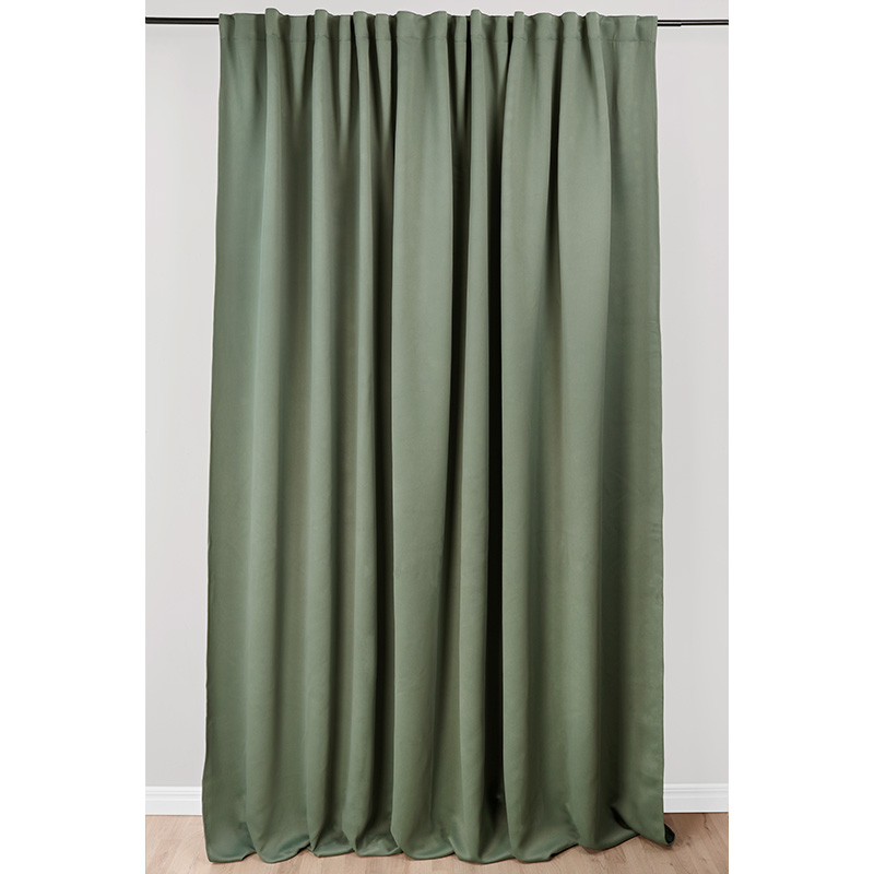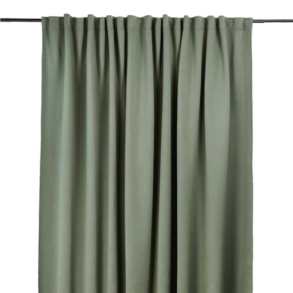 Multibandslängd med generös bredd på 280cm i mörkläggande mjukt tyg med lite lyster, även kallad sun-out. Mörkläggningsgardinen är vävd med en speciellt mörkläggande väv i tre skikt, med spärrskikt i mitten. Det hindrar ljus från att tränga in i sovrummet och stänger även ute månsken och gatubelysning om natten. Gardinen har multiband vilket innebär att du kan hänga den på rundstång med kanalen, använda veckbandet med fingerkrokar, använda endast hällorna för att få en rynkad gardin samt använda rynkbandskrokar. Gardinen har overlock nertill och går enkelt att fålla med hjälp av fållband.