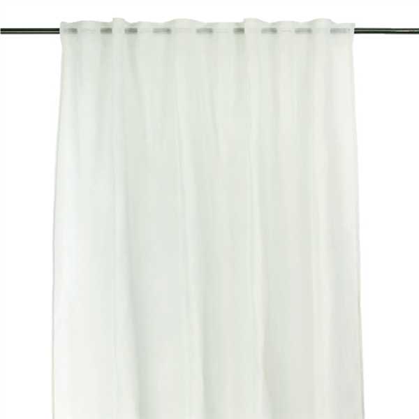 Med sina generösa mått på 280x250cm är Gardin Hilton perfekt för stora fönsterpartier, panoramafönster och rum med högt i tak. Det skira tyget släpper in ett mjukt, naturligt ljus och den fint vävda strukturen skapar en exklusiv linnelook som passar alla inredningsstilar.