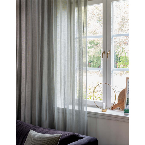 Med sina generösa mått på 280x300cm är Gardin Hilton perfekt för stora fönsterpartier, panoramafönster och rum med högt i tak. Det skira tyget släpper in ett mjukt, naturligt ljus och den fint vävda strukturen skapar en exklusiv linnelook som passar alla inredningsstilar.