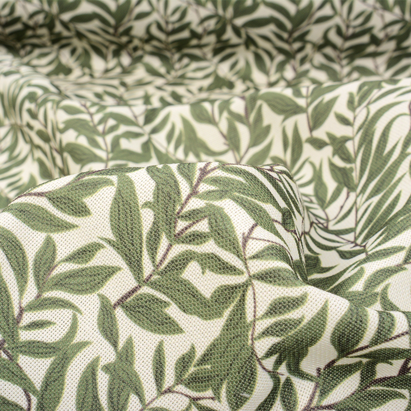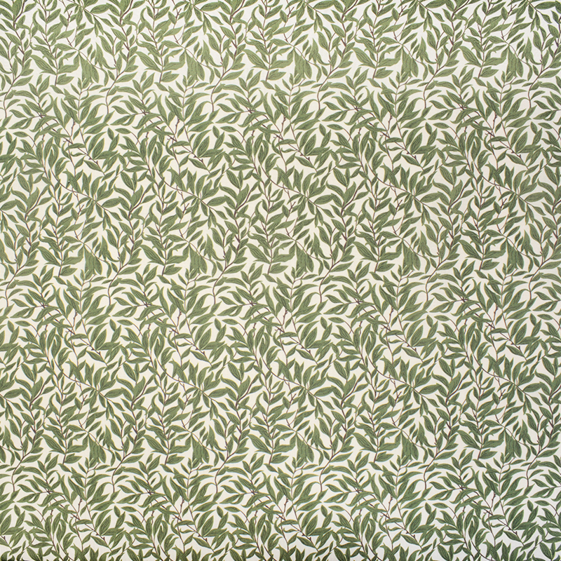 Dekorativt inredningstyg med tryckt mönster av blad. Tyget är tunt och har därmed ett fint och mjukt fall. Det har dessutom en slitstyrka på 100 000MD. Passar därför fint till slitstarka projekt som möbelklädsel, men passar även utmärkt till gardiner, tygtavlor, kuddar och annan inredning. Tyget är Öko-tex 100 certifierat.