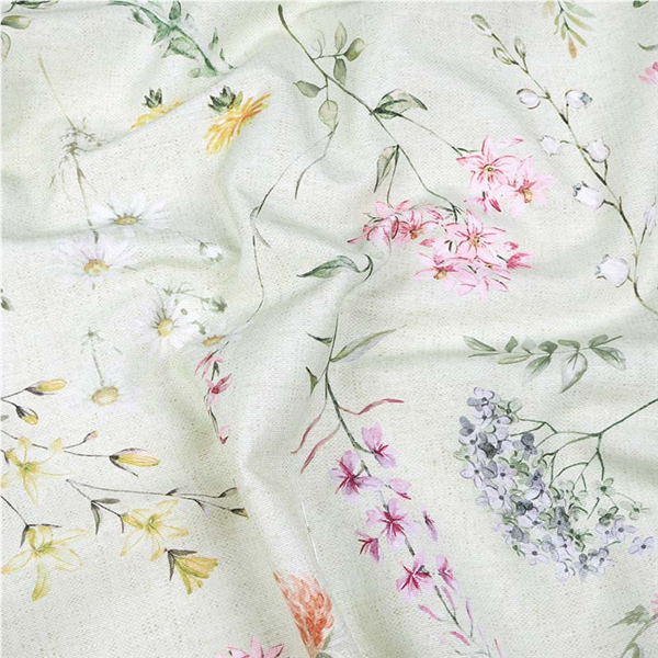 Mjukt och följsamt Inredningstyg i 30% återvunnet material som upplevs mycket lättarbetat. Inredningstyget har ett tryckt mönster som återges på tygets rätsida, medan avigsidan är enfärgat vit. Passar perfekt till att sy gardiner, dukar, kuddfodral och andra inredningsdetaljer.