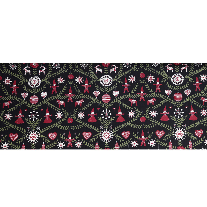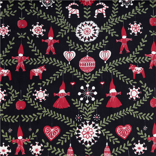 Härligt mönstrat Inredningstyg med Julmotiv. Tyget Garntomte är i 100% Bomull och är mjukt och följsamt. Sy egna julgardiner, kuddfodral, dukar eller andra julfina textilier att pynta med till jul!