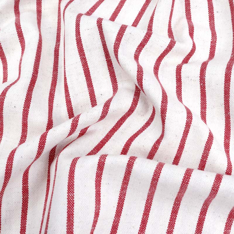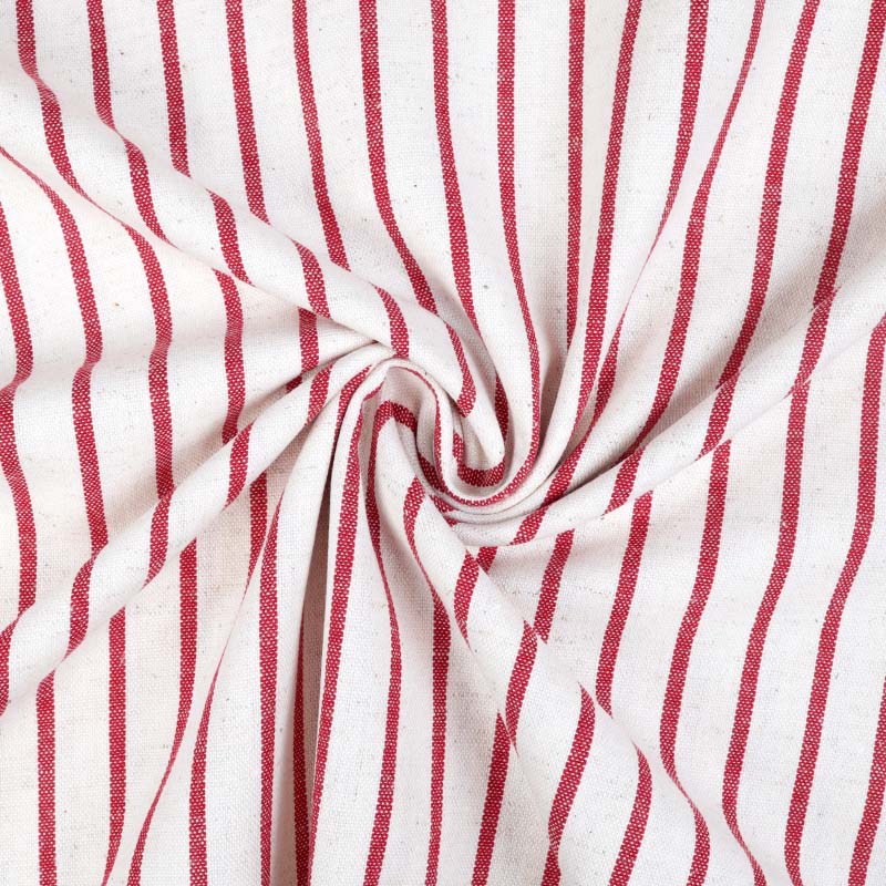 Sy i klassiska Inredningstyg Tina i återvunna material (70% återvunnen bomull, 15% återvunna polyester och 15% lin). Med sitt vävda, smalrandiga mönster blir tyget en klassisk detalj som passar i alla rum och hem. Tyget upplevs mycket mjukt och följsamt, med ett naturligt fall, och passar därför utmärkt till sömnad av gardiner, dukar, kuddfodral, draperier med mera, men funkar givetvis till klädsömnad med!