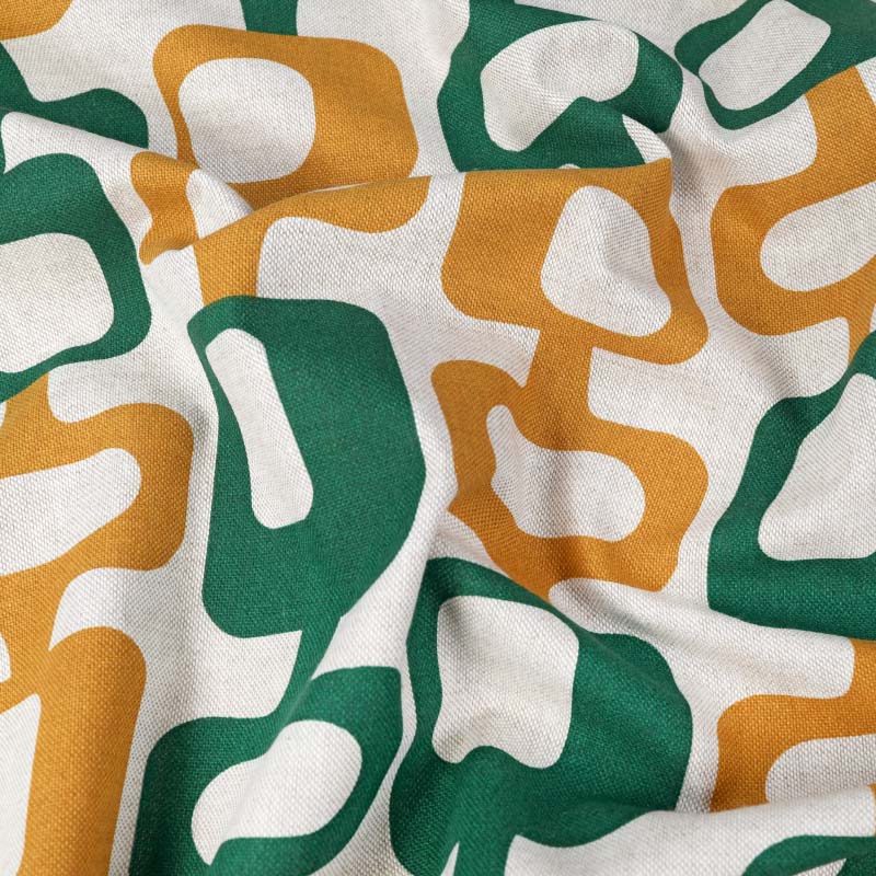 Ett vackert, tätvävt Inredningstyg i härlig bomullsblandning med tryckt mönster. Tyget har en fin struktur som påminner om en stilren linnelook och är mycket följsamt och lättarbetat. Passar perfekt till sömnad av dukar, gardiner, kuddfodral, väskor och mycket mer!
