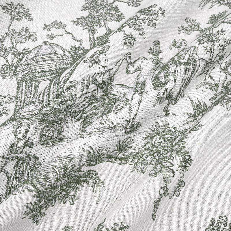 Jacquardtyget är även tåligt och har en slitstyrka på 18 000MD, med en bredd på 140 cm, vilket gör det utmärkt för en mängd olika projekt såsom gardiner, prydnadskuddar, sittdynor, sänggavlar, fotpallar, draperier, väskor och andra kreativa sömnadsidéer.