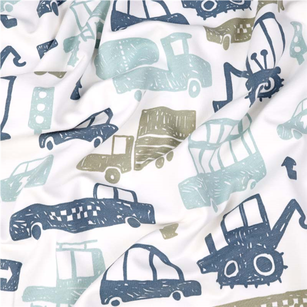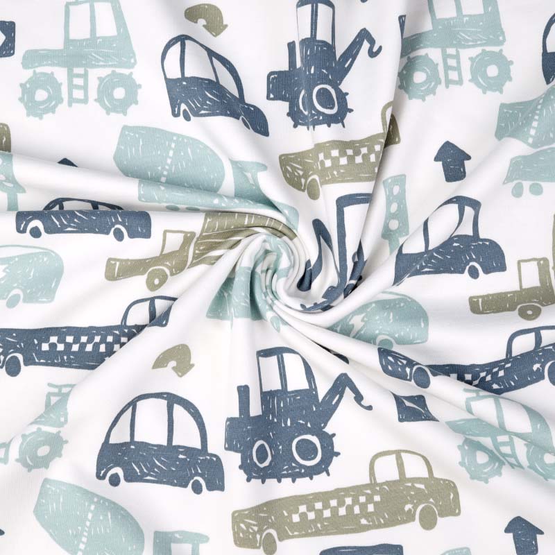 Mjukt och tunnare Joggingtyg, även kallat French Terry, med stormönstrat tryck. Joggingen har en otroligt följsam känsla och en generös stretch, vilket gör det både bekvämt att bära och roligt att sy i.
