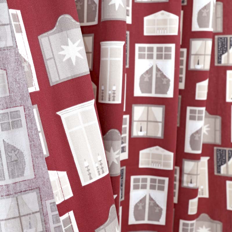 Gardin Julfönster (2-pack) ger en vacker och stämningsfull detalj till i rummet! En Gardin i 100% bomull med ett mjukt, lätt fall mot golvet och en vacker linnelook kvalité samt overlock nertill. Gardinen har ett vacker tryckt mönster designat av en svensk designer och finns även som färdigsydda Panelgardiner.
