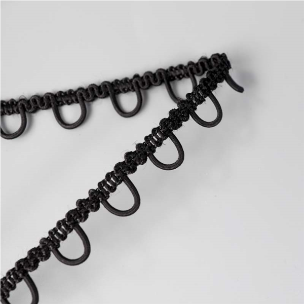Vackert och praktiskt knapphålsband med öglor. Passar till knäppkanter på klänningar, blusar, skjortor och andra klädsömnader. Bandet är fast medan öglorna är stretchiga!