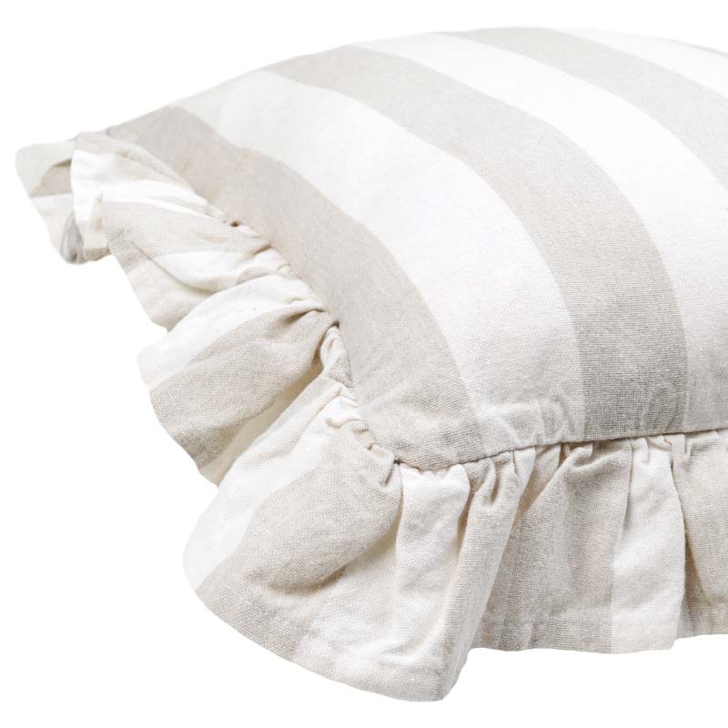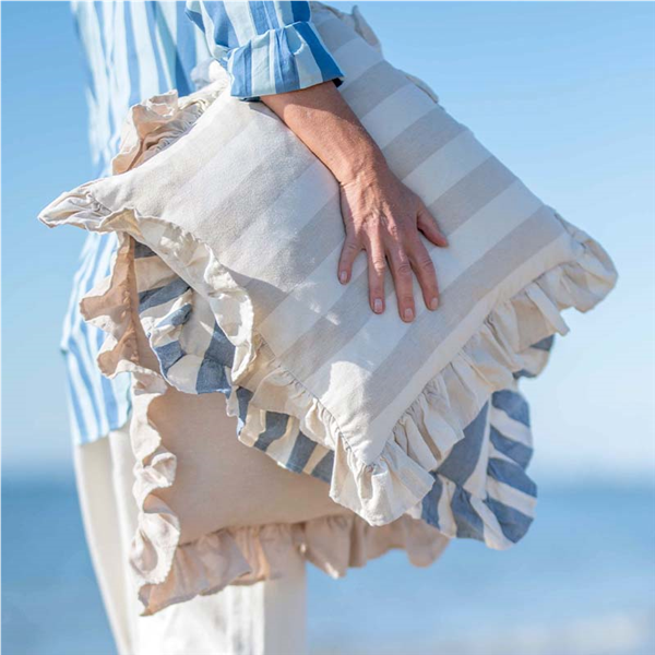 Piffa till hemma med nya Kuddfodral Amalia, ett Kuddfodral med klassiskt bredrandigt mönster och otroligt mjuk känsla. Kuddfodralet är i 100% återvunnet material (70% återvunnen bomull och 30% återvunnen polyester). Fodralet är dubbelsidigt, vilket innebär att samma struktur och mönster återges på både fram- och baksidan. En vacker dekorativ volang omger fodralet. Försluts smidigt med dolt blixtlås på baksidan.
