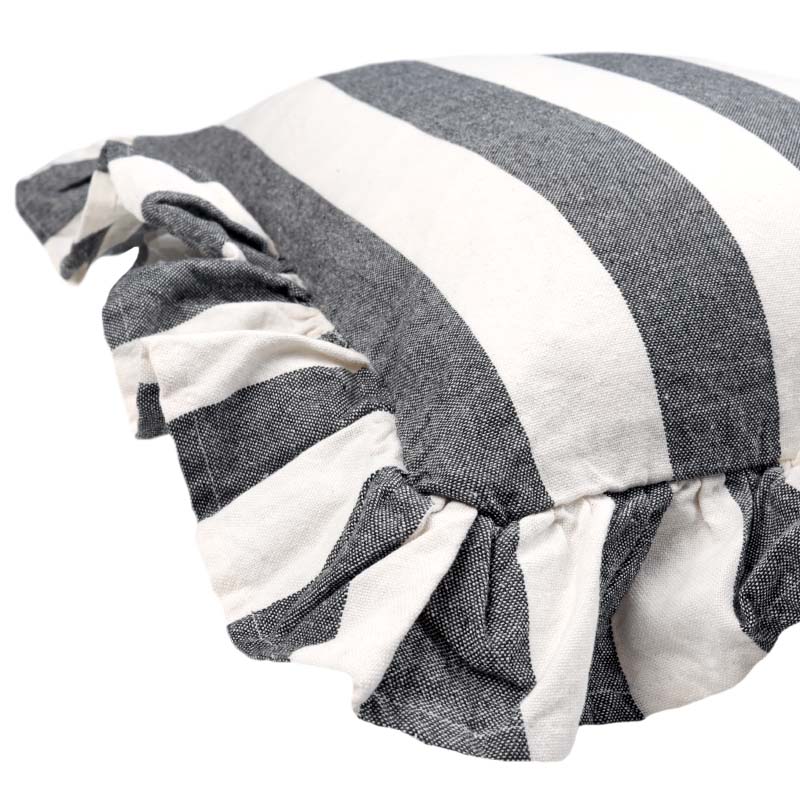Piffa till hemma med nya Kuddfodral Amalia, ett Kuddfodral med klassiskt bredrandigt mönster och otroligt mjuk känsla. Kuddfodralet är i 100% återvunnet material (70% återvunnen bomull och 30% återvunnen polyester). Fodralet är dubbelsidigt, vilket innebär att samma struktur och mönster återges på både fram- och baksidan. En vacker dekorativ volang omger fodralet. Försluts smidigt med dolt blixtlås på baksidan.