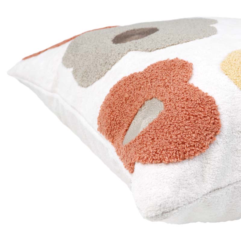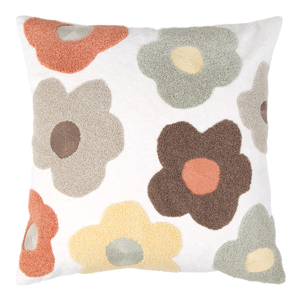 Vackert kuddfodral med broderat blommönster och mjuk kortklippt teddy-kvalité. Mönstret återges enbart på framsidan, medan baksidan är enfärgad. Försluts smidigt med dolt blixtlås längs fodralets nedre kant.