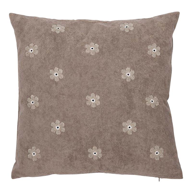 Vackert kuddfodral med tuftat mönster av små blommor i mjuk kortklippt teddy-kvalité. Mönstret återges enbart på framsidan, medan baksidan är enfärgad i samma mjuka kvalitet. Försluts smidigt med dolt blixtlås längs fodralets nedre kant.