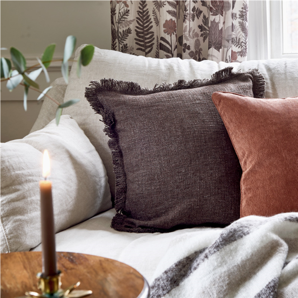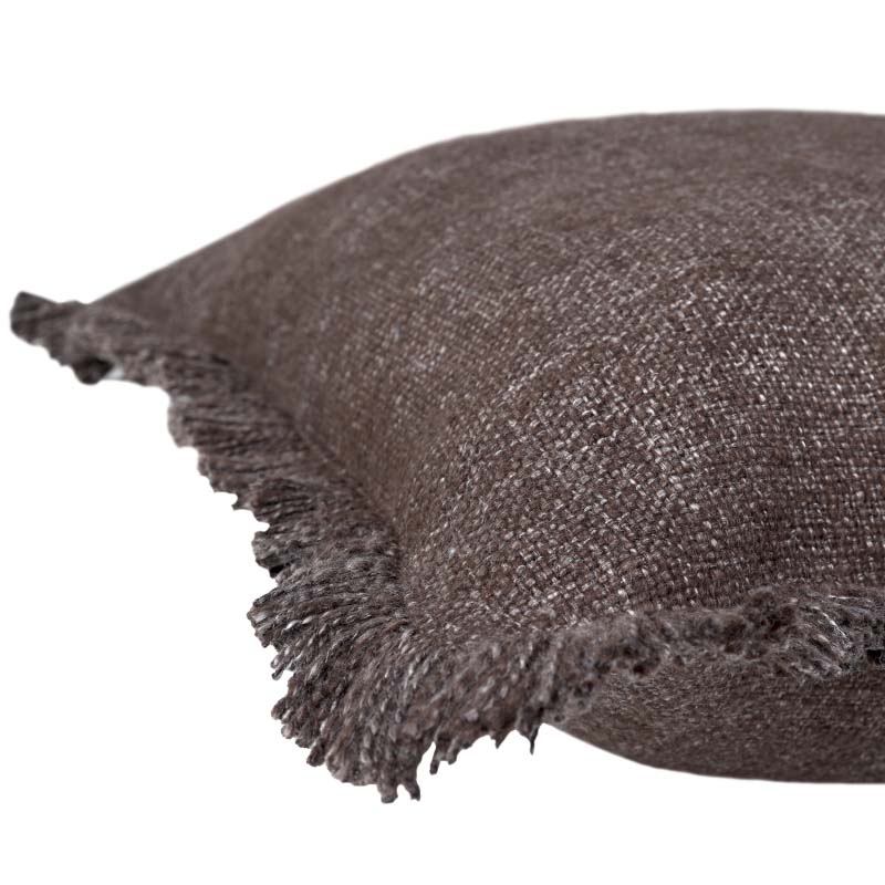 Inred snyggt med stilrena Kuddfodral Madde! Fodralet har en enkel men otroligt snygg vävnad som återges på både fram- och baksida, samt dekorativa fransar längs med kanterna. Försluts smidigt med blixtlås på fodralets baksida.