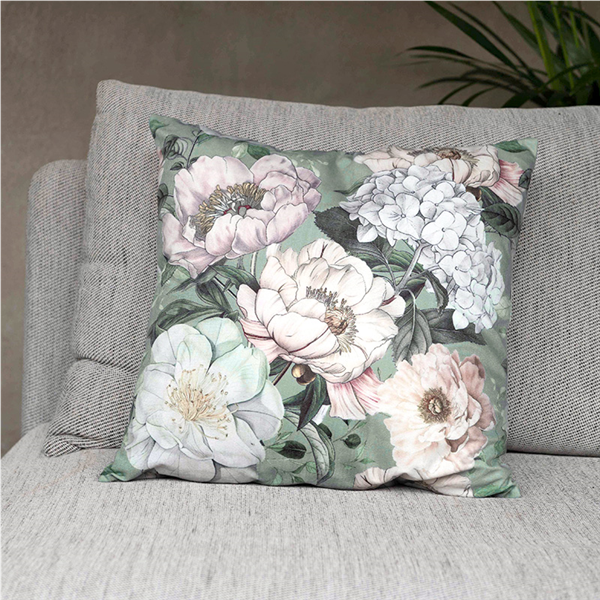 Piffa till hemma med nya Kuddfodral Pion, ett Kuddfodral med len sammetskänsla och vackert tryck. Fodralet är dubbelsidigt, vilket innebär att samma struktur och mönster återges på både fram- och baksidan. Försluts smidigt med dolt blixtlås på baksidan.