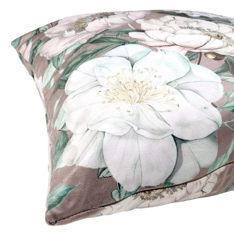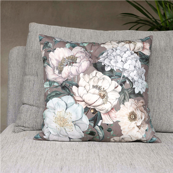 Piffa till hemma med nya Kuddfodral Pion, ett Kuddfodral med len sammetskänsla och vackert tryck. Fodralet är dubbelsidigt, vilket innebär att samma struktur och mönster återges på både fram- och baksidan. Försluts smidigt med dolt blixtlås på baksidan.