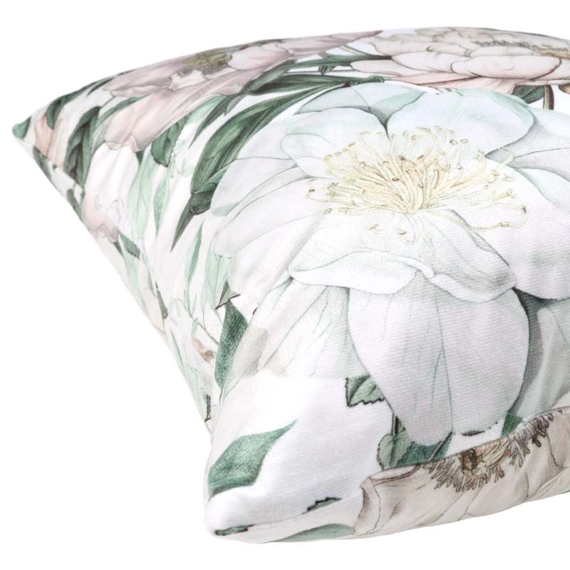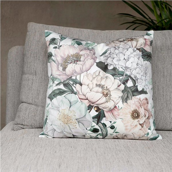 Piffa till hemma med nya Kuddfodral Pion, ett Kuddfodral med len sammetskänsla och vackert tryck. Fodralet är dubbelsidigt, vilket innebär att samma struktur och mönster återges på både fram- och baksidan. Försluts smidigt med dolt blixtlås på baksidan.