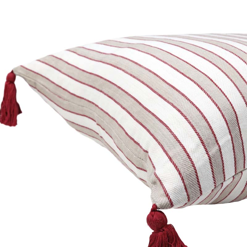 Kuddfodral i 100% bomull! Kuddfodral Smedjebacken är en vacker och stämningsfull detalj att ha i soffan. Kuddfodralet har ett vävt mönster som återges på både fram- och baksida samt dekorativa tofsar i varje hörn. Försluts enkelt med blixtlås längs fodralets ena sida.