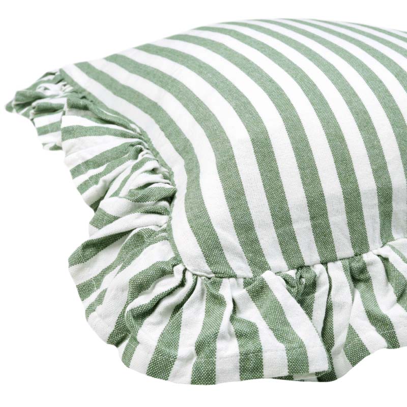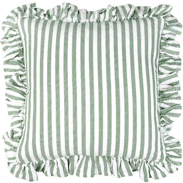 Piffa till hemma med nya Kuddfodral Svea, ett Kuddfodral med klassiska ränder och otroligt mjuk känsla. Kuddfodralet är i 100% återvunnet material (70% återvunnen bomull och 30% återvunnen polyester). Fodralet är dubbelsidigt, vilket innebär att samma struktur och mönster återges på både fram- och baksidan. En vacker dekorativ volang omger fodralet. Försluts smidigt med dolt blixtlås på baksidan.