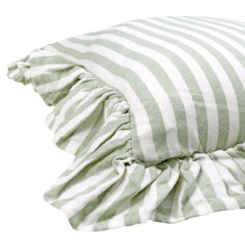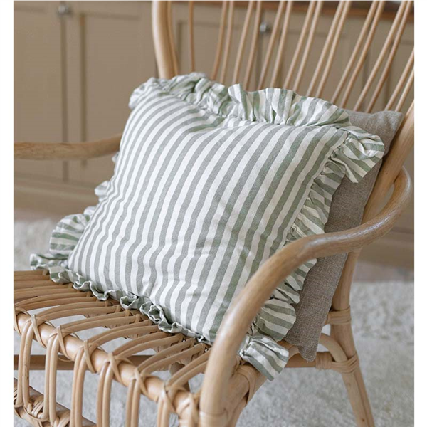 Piffa till hemma med nya Kuddfodral Svea, ett Kuddfodral med klassiska ränder och otroligt mjuk känsla. Kuddfodralet är i 100% återvunnet material (70% återvunnen bomull och 30% återvunnen polyester). Fodralet är dubbelsidigt, vilket innebär att samma struktur och mönster återges på både fram- och baksidan. En vacker dekorativ volang omger fodralet. Försluts smidigt med dolt blixtlås på baksidan.