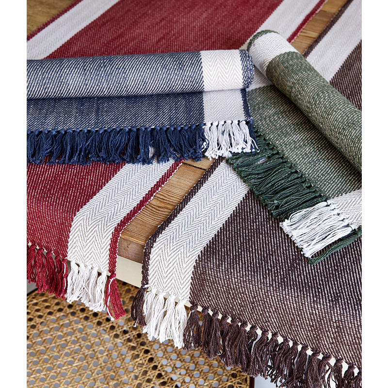 Duka fint med Bordslöpare Emilia i 100% bomull, med härlig textur och vävt mönster. Duken har dekorativa fransar på kortsidorna och en fiskbensstruktur. I och med att löparen är vävd i bomull, är den mjuk och lägger sig fint på bordet!