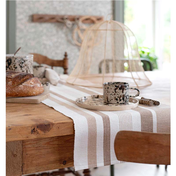 Duka fint med Bordslöpare Petter, en ribbad löpare med ett vackert randigt mönster i 100% bomull! Löparen har en tätt vävd struktur med fållade sidor. Löparens mått är 35x120cm.